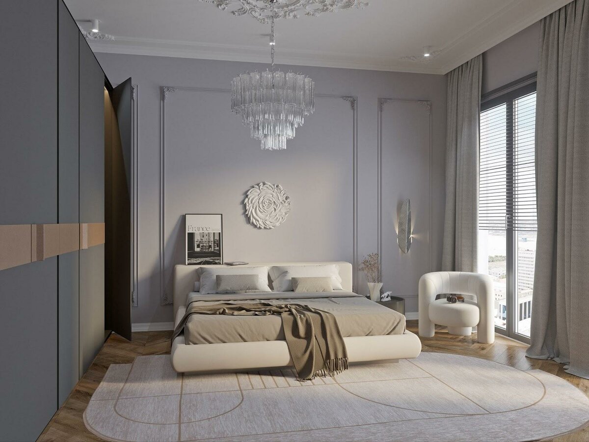 Резкие границы между стенами и потолком визуально «режут» пространство, делая его меньше. Простой способ этого избежать — выкрасить стены и потолочные плинтусы в один цвет. Когда нет четкой границы между поверхностями, взгляд скользит плавно, и комната кажется выше.